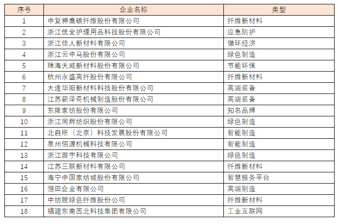 ? ? ? ?在“十四五”開局之年,中國紡織工業(yè)聯(lián)合會正加速推進(jìn)紡織行業(yè)與資本市場的融合工作。7月26日,中國紡織工業(yè)聯(lián)合會發(fā)布《關(guān)于公布2021至2022年度紡織行業(yè)重點(diǎn)培育擬上市企業(yè)推薦名單的通知》。經(jīng)過嚴(yán)格篩選和評審,選拔出具有領(lǐng)先技術(shù)、良好發(fā)展?jié)摿?、符合產(chǎn)業(yè)政策、在資本市場有融資需求的18家優(yōu)勢企業(yè),形成推薦名單。這些企業(yè)涉及纖維新材料、智能制造、時尚建設(shè)、綠色制造、高端產(chǎn)業(yè)用紡織品等領(lǐng)域,這也正是紡織“十四五”重點(diǎn)支持的重點(diǎn)領(lǐng)域。